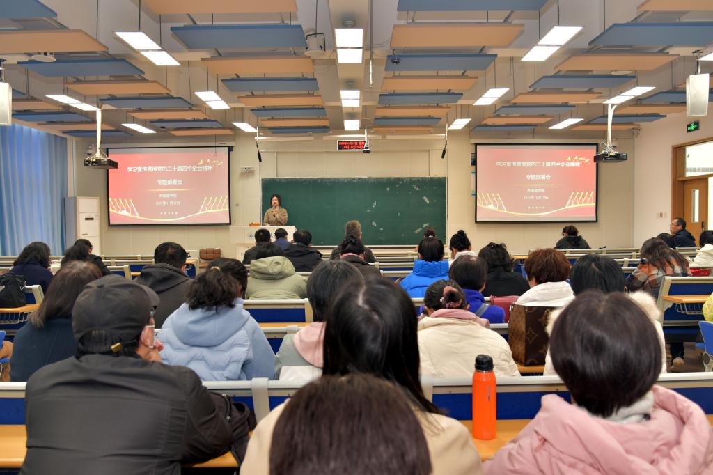 2025年11月17日下午,外国语学院在B201教室召开全院教职工大会,专题部署学习宣传贯彻党的二十届四中全会精神。