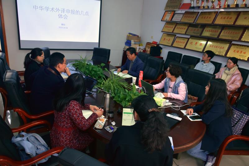 会议由商利伟主持,魏怡博士主讲,副院长张艳,各系博士及对具报中华学术外译项目的教师以及我院MTI研究生参加了会议。