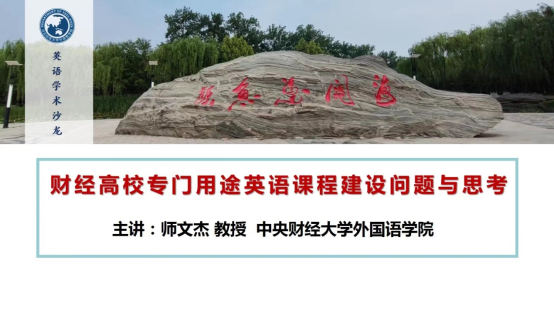 师文杰教授讲座题目为“财经高校专门用途英语课程建设问题与思考”。讲座围绕财经类高校专门用途英语课程建设的现状和问题,结合师教授本人参与的课程改革、教师发展和外语课堂“课程思政”建设等案例,分析了财经类高校大学英语改革中根据学生需求和教师专业特长构建多元化课程体系的必要性,指出了评估改革成果和学习效果的方法,并对改革过程中教师的职业发展困惑和成长路径提出了建议。同时,师教授还根据自己的教学实践,分享了大学英语课程中“思政”元素融入的具体做法。