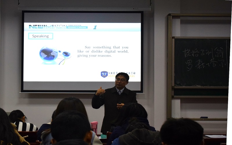 当下,经济不断发展,社会不断进步,我国的大学英语教育面临着重大的机遇和挑战。张教授说,这是最好的时代,互联网的快速发展,为我们提供了更多的资源空间。他给同学们推荐了一些学习英语的微信公众号,如英语巴士、蔡雷英语、英语视频,还有软件TED等。当然,挑战也有,即学校培育的人才与社会需要的对接,他一直在思考,到底该教些什么,又如何教,这个社会真正需要什么?可以说是“前路漫漫,其修远兮”!