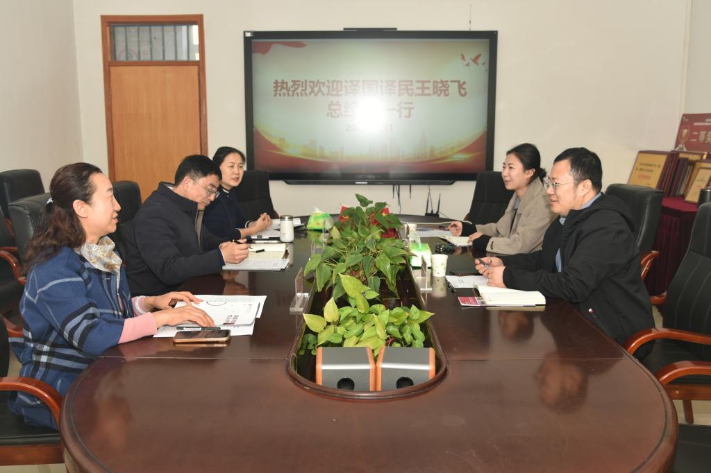 张润代表学院欢迎译国译民一行的来访,对集团多年来在学院本科和研究生实习、实践方面给予的支持表示由衷的感谢。张艳和杨清珍分别介绍了学院本科和研究生教育的现状和未来规划,希望进一步拓宽与译国译民集团的合作。