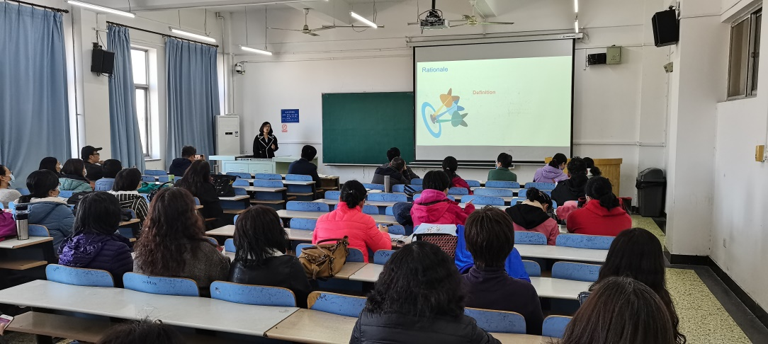 张亚楠老师首先介绍了“泛读”的基本概念、泛读课程设计的原则和活动步骤等内容,厘清了教师对于泛读活动的理解误区,充分阐述了泛读对于语言学习的积极意义。然后她重点介绍了自己在读写课程中建立学习社区,并引导学生进行英语泛读的教学实践,展示了学生在此项活动中的表现和收获,并对开展泛读活动进行了经验教训总结,为教师们开展教学实践带来了启发。