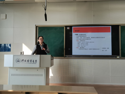 10月18日,外语教学部举办了本年度第5期教学沙龙,主讲教师为外语教学部李丽洁老师,题目为“体会语篇中的情感 - 评价理论在阅读教学中的应用”。外语教学部、外国语学院、商学院等近80名教师参加。